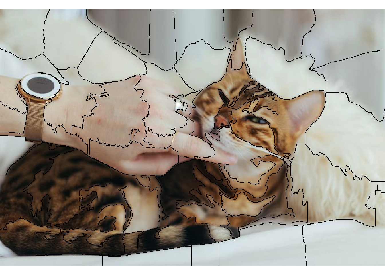 We are now ready to poke into the model and find out what makes it think our image is of an Egyptian cat. But… first I’ll have to talk about yet another concept: superpixels (I promise I’ll get to the explanation part in a bit).