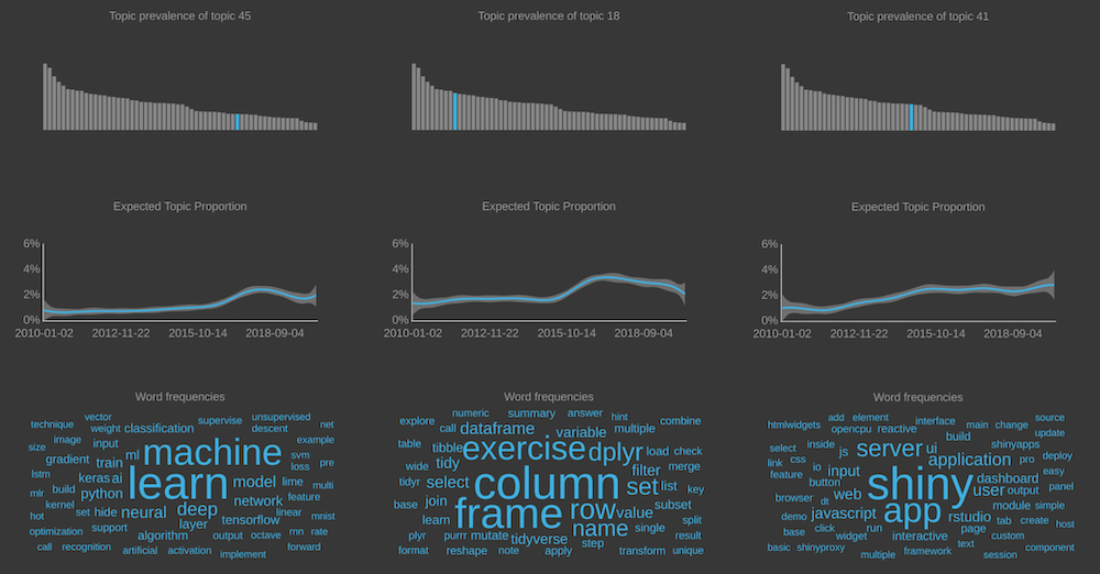 A Shiny app to browse the results of a topic model trained on 30,000+ blog articles about the statistical programming language R.