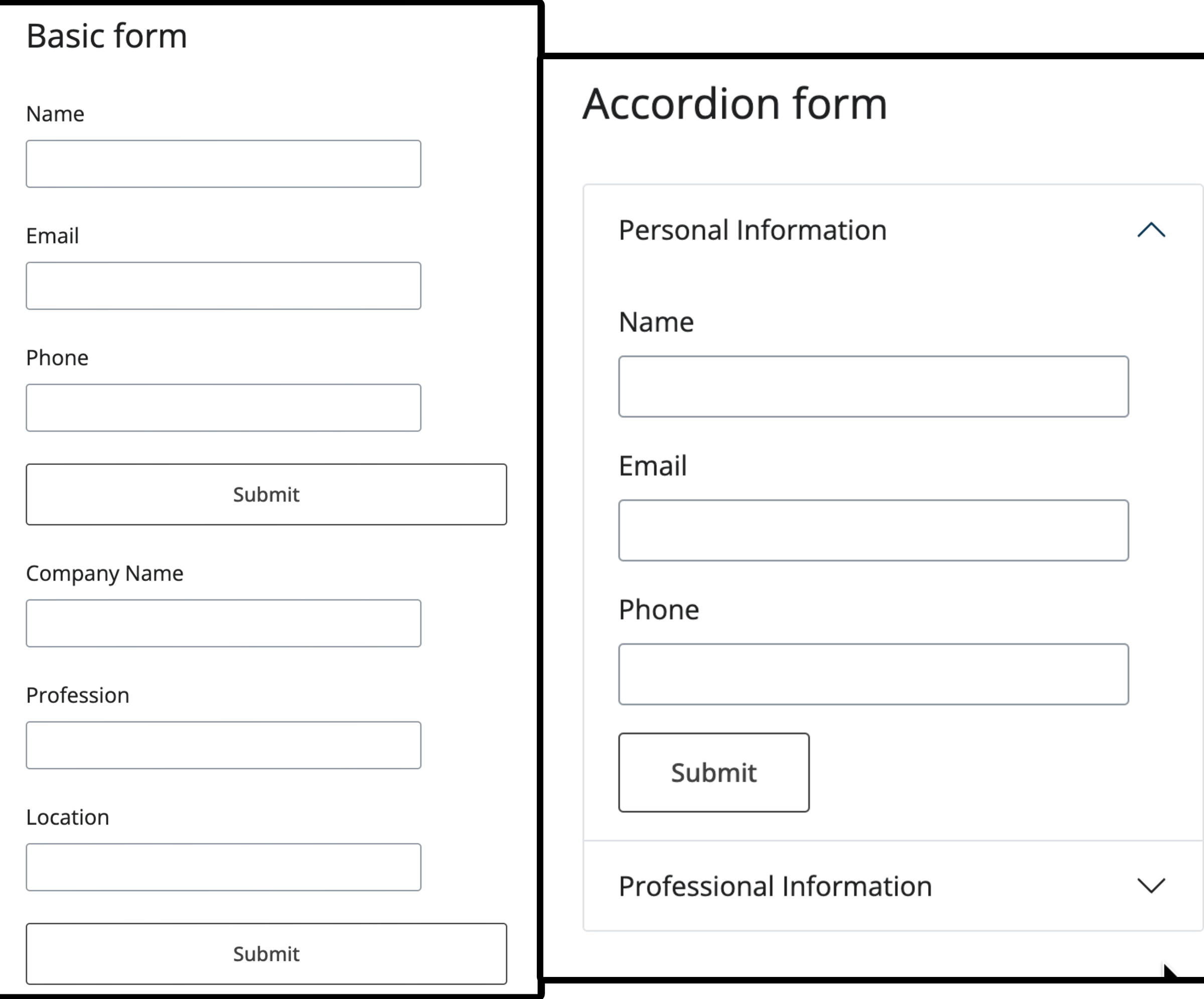 Forms without and with the use of Accordions#